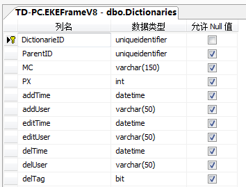 1.ParentID为上级的主键DictionarieID,ParentID目前为关系键固定的名称。